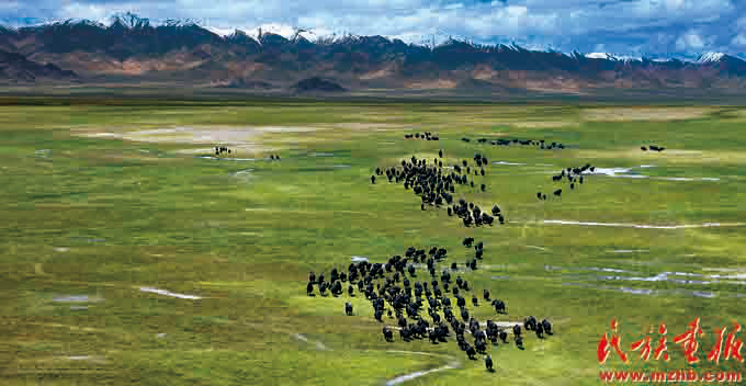 青海擔負著保護三江源、保護“中華水塔”的重大責任。為確?!耙唤逅驏|流”,青海各族人民積極投入生態(tài)文明建設,三江源植被逐漸恢復,野生動物數量增加。圖為野牦牛奔跑在高原(民族畫報資料)
