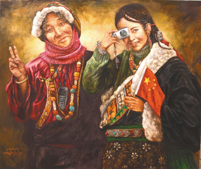 “以前畫畫時(shí),對(duì)自己的最高要求就是畫得要逼真,把油畫畫得像一幅放大了的照片,而現(xiàn)在關(guān)注的是如何畫出能體現(xiàn)當(dāng)代的畫面。西藏的美是無窮無盡的,我就想用繪畫的方式窮盡一生去追求,展現(xiàn)大美西藏?!比缃竦乃髀幔チ顺醭雒]時(shí)一味追求畫面質(zhì)感的匠氣,多了些許內(nèi)心對(duì)西藏這片熱土深層次的思考。他筆下的西藏是一片充滿生機(jī)的土地,濃墨重彩之間,既有對(duì)傳統(tǒng)和過往年華的回望和懷念,又在仿若不經(jīng)意間透過一個(gè)眼神、一抹色彩、一個(gè)小物件盡情詮釋活力和希望。