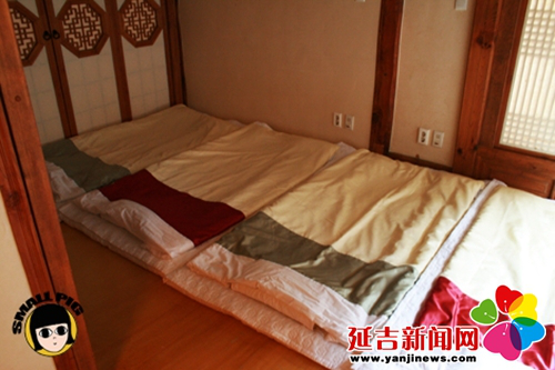炕是朝鮮族家庭室內(nèi)活動(dòng)的主要場(chǎng)所,吃飯時(shí)女主人會(huì)將食物都擺放在低矮的小餐桌上,搬到炕上全家人席炕而坐,盤腿圍坐一起吃飯。到了晚上,人們還是會(huì)在炕上鋪上被褥睡覺。因?yàn)榭皇且患胰酥匾幕顒?dòng)場(chǎng)地,所以勤勞干凈的朝鮮族婦女,每日清晨都會(huì)以“擦炕”開啟一天的勞動(dòng)模式。
