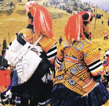 要論“疊穿”的數(shù)量之最,則當屬貴州大方縣顯母村的苗族女性了。與苗族慣用銀飾的固有印象不同,這里的苗族女性鮮以銀為飾,她們用數(shù)量極為可觀的服飾“疊穿”來彰顯富裕。節(jié)日里,顯母村的苗族女性換上盛裝——數(shù)條百褶裙系在腰間,塑造出豐腴的臀部造型,內(nèi)層裙子素凈無花,外層裙子則布滿條帶狀蠟染裝飾。在這個難得的大型社交場合,未婚女孩通過“疊穿”后的獨特造型來展示自己的魅力,衣物的數(shù)量和精致程度成為了吸引異性、獲得肯定的重要標準和獲得美好婚姻的重要條件。到了婚禮時,女性所著裙子的數(shù)量更是可達35條?;楹?,她們要在裙邊加上一圈深色邊飾以作標識。
