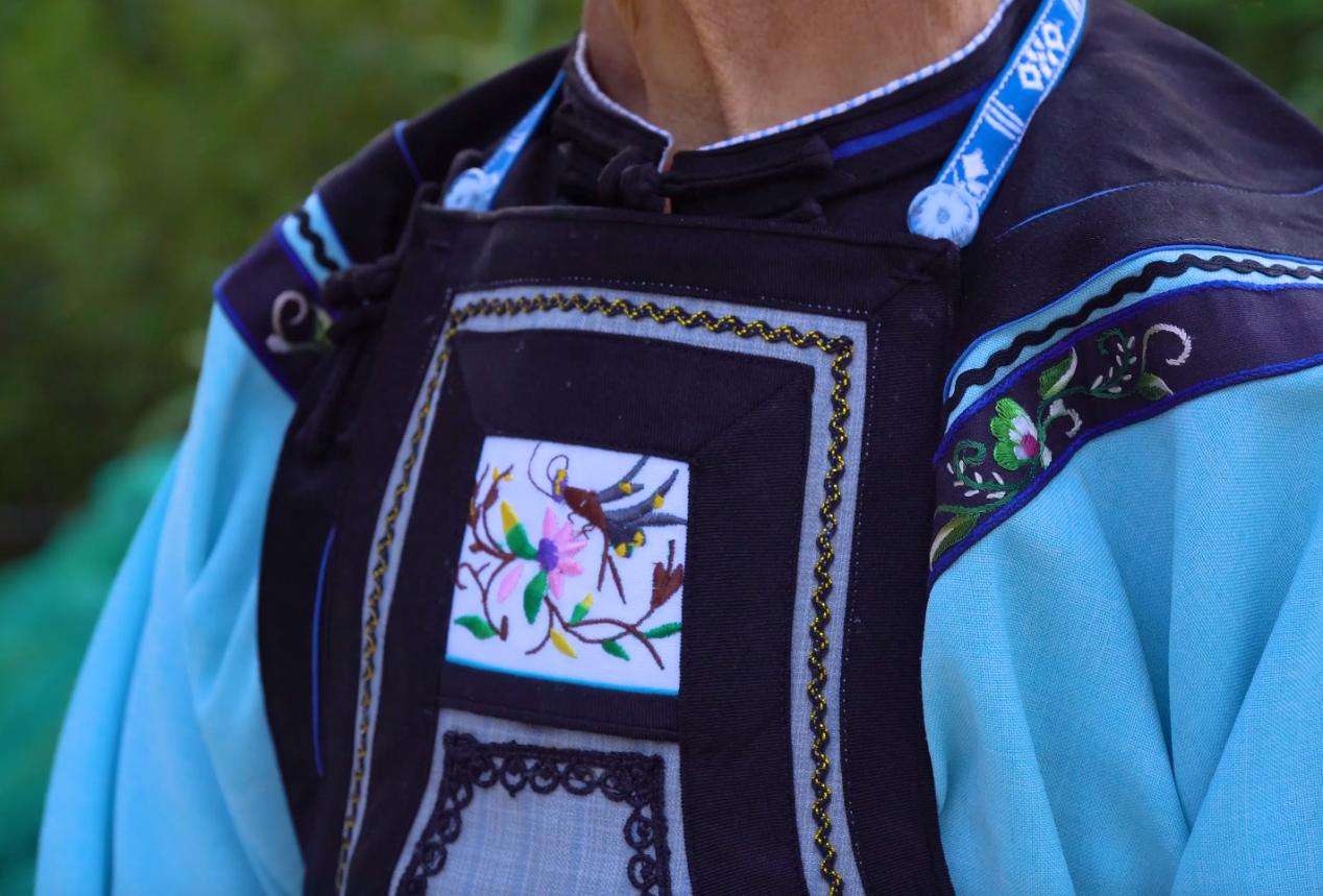 傳統(tǒng)服飾是由布依族傳統(tǒng)工藝制作而成,其上衣以藍色打底的斜襟衣和白色打底的圍腰為主,上衣對襟處繡有花草圖案作為裝飾,圍腰上部也繡有花草圖案作為描邊。下身則以黑色長褲和灰色長褲為主,衣飾上所有的雕花刺繡圖案全部出自之手。多從市場上購買。其上身對襟處和圍腰上部也繡有花紋圖案,但是這些花紋圖案則是現(xiàn)代機器之功,下身以黑色打底的長褲為主,在褲腳處繡有花草圖案,上板村布依族女性們還有一個習(xí)慣,就是不管是穿戴傳統(tǒng)服飾還是現(xiàn)代服飾都會戴有黑色圓帽?! ?/p>