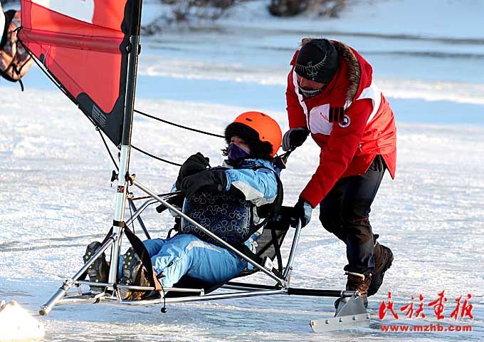 當?shù)厝罕婓w驗冰帆運動的無限樂趣。