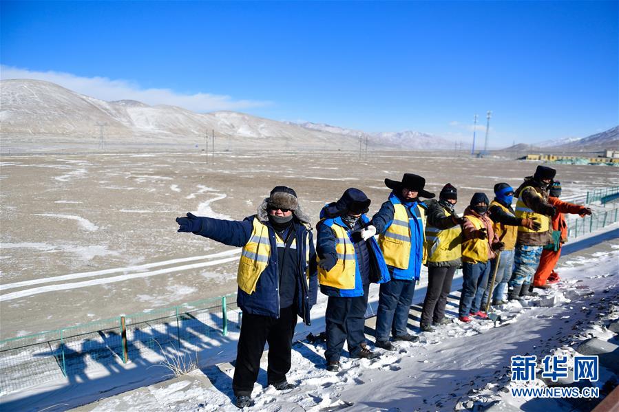 1月11日,中國(guó)鐵路青藏集團(tuán)有限公司格爾木工務(wù)段望昆線路車(chē)間的于本蕃(右一)和