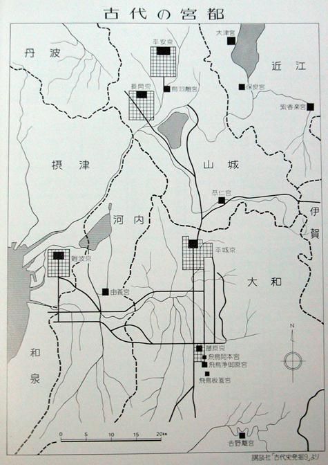 日本在這一時(shí)期開始建立自己的宮殿,在此之前都是茅草屋,并開始不斷遷都,整體都城呈現(xiàn)出從南向北而遷的趨勢(圖十九)。