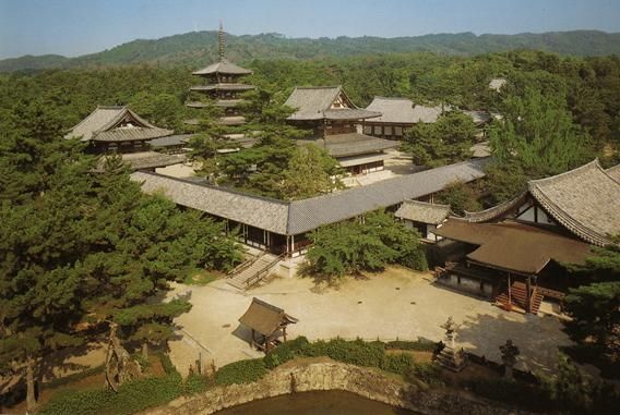 奈良時(shí)代雖不到百年,在日本文明史上卻留下了永久的痕跡。奈良地區(qū)的世界文化遺產(chǎn)共有9處,其中6個(gè)為寺院,最重要的寺院為法隆寺與唐招提寺。另7處為:東大寺、春日大社、春日山原始森林、元興寺、興福寺、平城宮跡、藥師寺(圖二十五)。