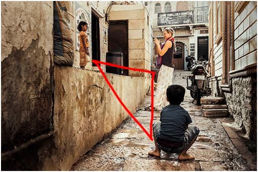 所以,畫面中的三角形關系安排是否得當,對于畫面的平衡和協(xié)調(diào)是非常重要。安排得當,畫面會看起來很舒服,主次關系、呼應關系也非常清晰。