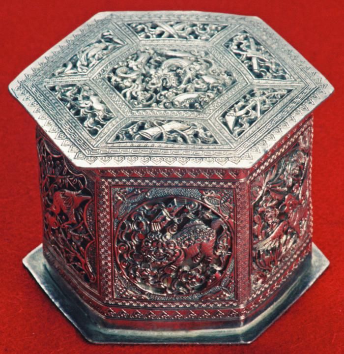 阿昌族的傳統(tǒng)文化豐富多彩,特點(diǎn)鮮明。其手工業(yè)極為發(fā)達(dá),手工業(yè)門(mén)類(lèi)有冶鐵、釀酒、榨油、紡織、染色、編制竹器和銀器制作等。其中以打制鐵器和銀器的歷史最為悠久且技藝精湛。