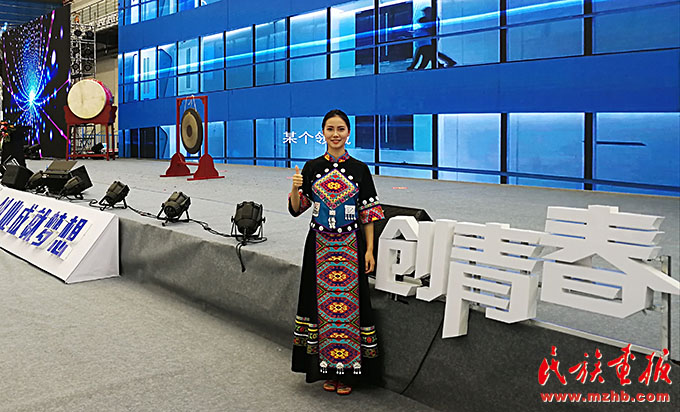鐘億靈在“創(chuàng)青春”中國(guó)青年創(chuàng)新創(chuàng)業(yè)大賽中為嘉賓做項(xiàng)目講解。