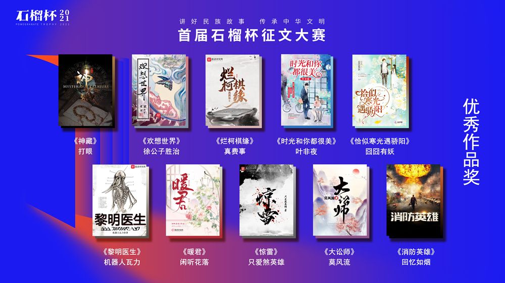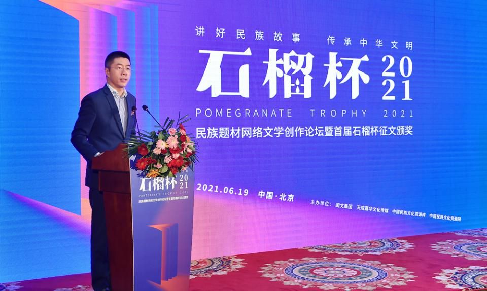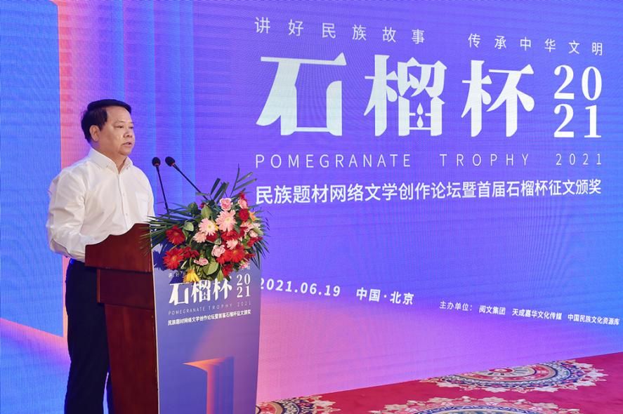 6月19日,民族題材網(wǎng)絡(luò)文學(xué)創(chuàng)作論壇暨首屆石榴杯征文大賽頒獎典禮在京舉行。作為國家民委主辦的“中華民族全家福”系列活動之一,首屆石榴杯征文大賽得到了國家民委文化宣傳司和中國少數(shù)民族文化藝術(shù)促進(jìn)會的指導(dǎo)與支持,由閱文集團(tuán)聯(lián)合天成嘉華文化傳媒、中國民族文化資源庫、中國民族文化資源網(wǎng)共同舉辦。本屆大賽以“講好民族故事 ,傳承中華文明”為主題,涌現(xiàn)出眾多弘揚民族精神、表達(dá)文化自信、傳播正能量的作品。經(jīng)過專家推薦及嚴(yán)格評審,《草原有座蒙古包》、《走西口之天山行》、《彩云微光》等三部作品獲“最具民族風(fēng)采獎”,《神藏》、《歡想世界》、《爛柯棋緣》、《時光和你都很美》、《恰似寒光遇驕陽》、《黎明醫(yī)生》、《暖君》、《驚雷》、《大訟師》、《消防英雄》等十部作品獲“優(yōu)秀作品獎”。所有獲獎作品都將收錄入中國民族文化資源庫。中國作家協(xié)會副主席、書記處書記吉狄馬加表示,本屆石榴杯大賽是在黨和國家長期以來堅持的對民族文化、少數(shù)民族作家創(chuàng)作和民族題材創(chuàng)作的大力扶持下,依托網(wǎng)絡(luò)文學(xué)平臺,將文學(xué)作品與影視作品改編、游戲、動漫產(chǎn)品制作結(jié)合起來,探索的一條發(fā)展民族文化的新路,具有開創(chuàng)意義。