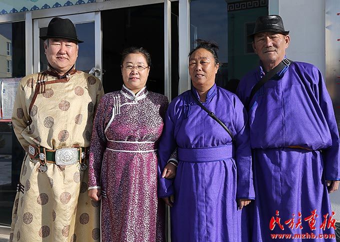旭仁格日樂(lè)夫婦和另一位“國(guó)家的孩子”阿優(yōu)?,敚ㄓ叶┓驄D合影。
