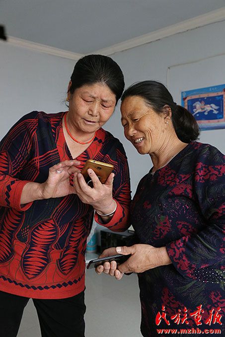 莎仁其其格(左)通過(guò)“國(guó)家的孩子”微信群和朋友保持密切聯(lián)系。