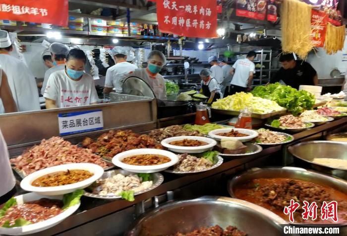 記者走訪徐州市區(qū)大街小巷發(fā)現(xiàn),各大餐館、飯店提前備足了貨源,店方更是拉起橫幅,布置花籃,紛紛推出特色伏羊菜品迎賓納客。11日中午,徐州七百歲羊肉館濱湖店店長張輝介紹,飯店在伏羊節(jié)期間預計每天要用掉大概15只羊的鮮羊肉。店內包間、大廳空桌早在一周前就被預訂滿。當天一早,附近很多市民就帶著鍋碗來店里打羊肉湯。中午,由于吃伏羊的客人較多,一樓大廳的餐位已經(jīng)翻臺多次?!胺蚬?jié)第一天,單獨他們這一個店面最少接待顧客50桌近600人次。