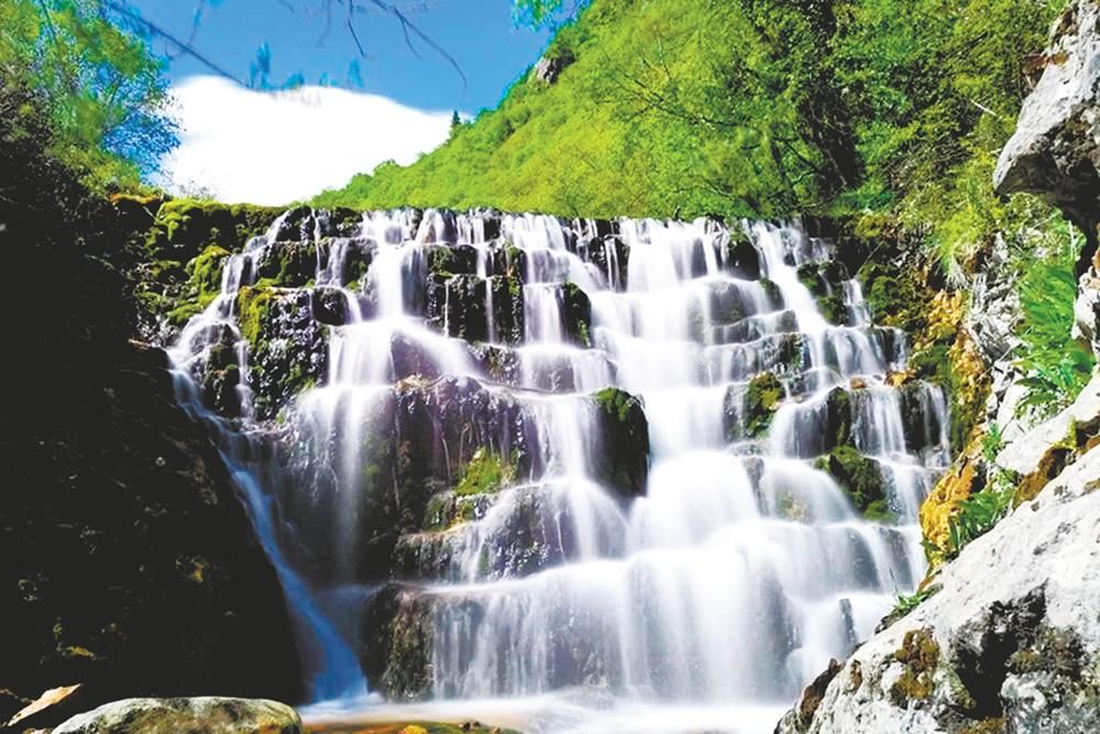 盛夏,從被金黃油菜花和綠油油的麥苗環(huán)繞的村莊,行駛到奇絕雋秀的高山峽谷,沿途群山涌翠、花木繁茂,古木參天、芳香馥郁、鳥語花香,美景讓人賞心悅目;野兔、馬鹿、馬雞等野生動物出沒于河畔叢林,讓人感到野趣十足;達(dá)坂紅葉、十二生肖盤、神龍?zhí)镀俨?、圣母天池、藥水泉瀑布,讓人流連忘返;雪山、峽谷、奇峰、石林、角巖、懸崖、峭壁等地貌群,讓人心醉神迷,會有“車在路上行、人在畫中游”的驚艷,也會被“樹下有鮮花、花中有飛蝶,山巔云霧繞、溪澗有飛瀑”的大美所征服。