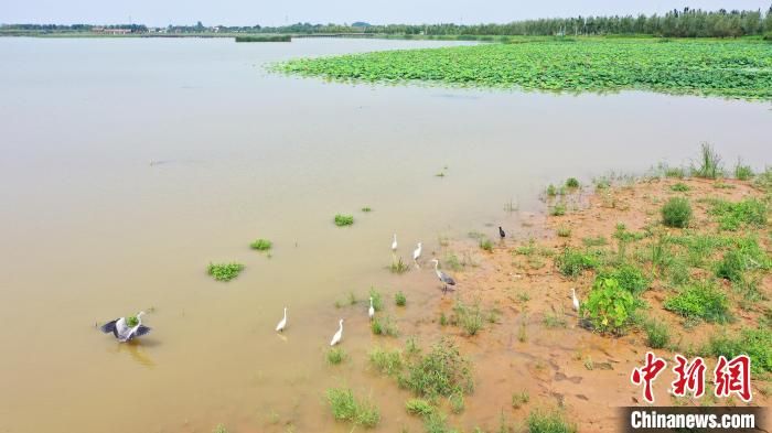 盛夏時節(jié),雨過天晴,美麗的南宮湖水波蕩漾,蒼鷺、白鷺、綠頭鴨等鳥類在此翔集,棲息覓食。河北省南宮市的南宮湖濕地公園,擁有3000多畝水面和52公里內(nèi)外環(huán)水系,是河北南部依傍縣城最大的人工湖。近年,當?shù)貙嵤┠蠈m湖水生態(tài)修復工程,昔日“藏污納垢,蚊蠅亂飛”的舊坑塘成為水清、岸綠、景美的生態(tài)湖、景觀湖。