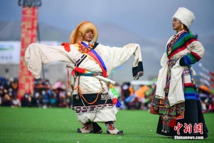 資料圖為西藏自治區(qū)拉薩市當(dāng)雄縣賽馬節(jié)上的藏族傳統(tǒng)服飾表演。 中新社記者 貢嘎來(lái)松 攝