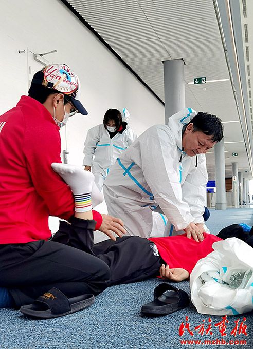 烏日根桑格利用在機場轉(zhuǎn)機時間,為國家柔道隊運動員進行調(diào)整治療。