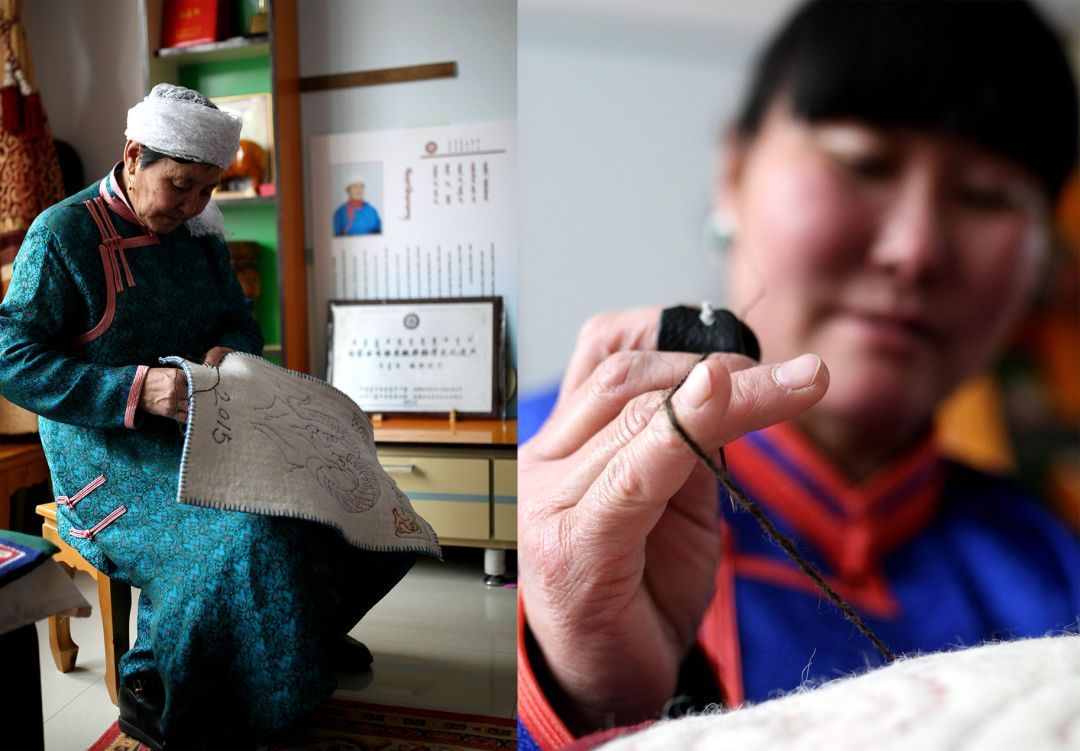 2014年,“氈繡技藝”成功入選了第四批國家級非物質(zhì)文化遺產(chǎn)代表性項目名錄,而如今,古老的蘇尼特氈繡技藝再一次開始風靡一時,延伸到了抱枕、沙發(fā)墊、手機套、電腦電視機蓋布、包包、筆筒上等一系列現(xiàn)在產(chǎn)品上。