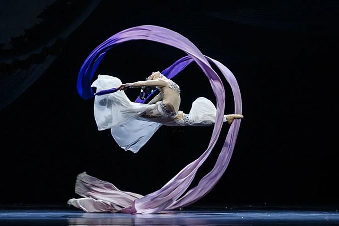 舞劇《傳絲公主》以蠶絲為戲劇元素,以蠶桑女寧兒與于闐王子尉遲的愛(ài)情為外在線索,以盛唐時(shí)中原與西域的交流往來(lái)為隱伏線索,將凄美的愛(ài)情故事與壯闊的家國(guó)情懷交織在一起,引領(lǐng)觀眾穿越到大唐盛世,感受繁興的絲路文化和豐富多彩的民族風(fēng)情。