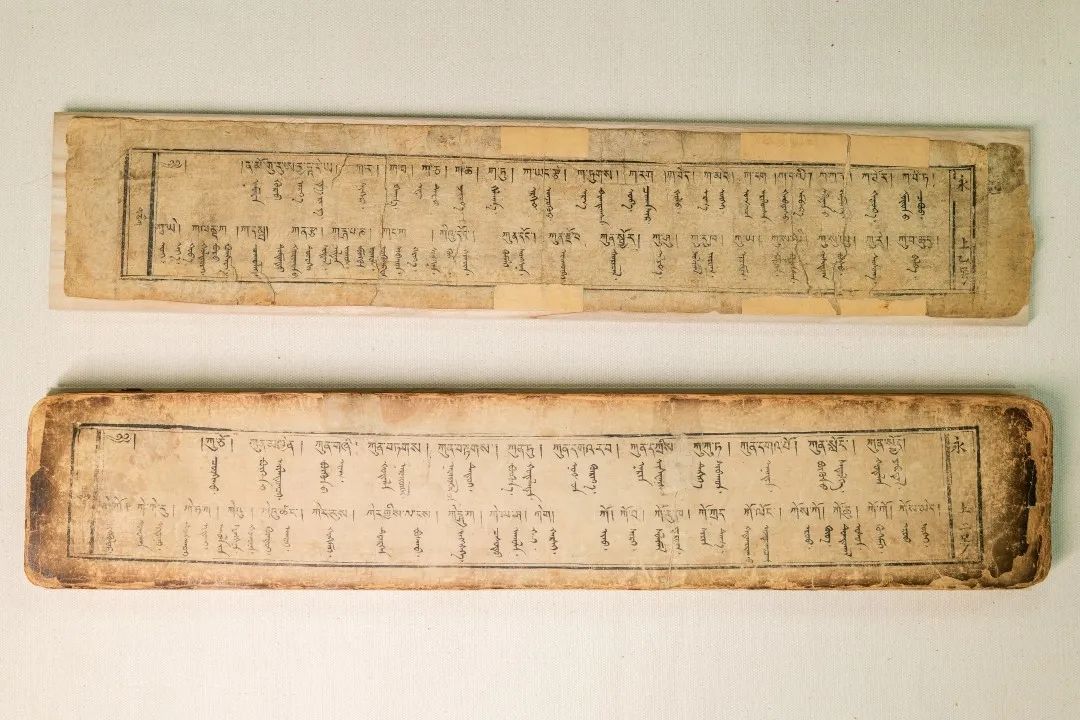 藏蒙對照詞典《詳解月光辭典》又稱《浩月輝映詞典》,該詞典由阿拉善拉隆巴阿旺丹德爾編著,清道光十八年(1838)北京嵩祝寺木刻本。1卷,139葉,頁面尺寸10.6×56厘米,版框尺寸7.5×49厘米,四周雙欄,梵來裝。每頁以藏蒙、藏蒙四行為階梯排列,每列35行,每行1字。頁面左側(cè)有藏文頁碼,右側(cè)有漢字《永》和漢文頁碼。