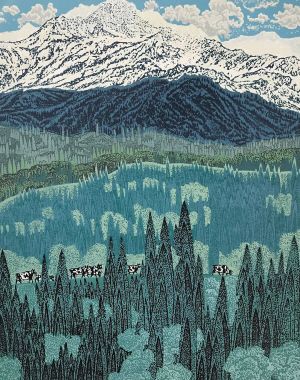 《天山腳下新牧場(chǎng)》呂劍利 版畫 73cm×93cm 全國版畫展展出作品