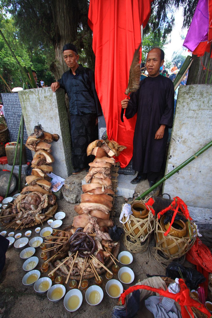 人們傳說只有醉倒了"霞神",它才能永遠留在這方,才能使這里風調(diào)雨順。當水書先生念了最后的咒詞,祭典才在鼓樂聲和歡呼聲中結(jié)束。最后,各族系將祭肉一并聚攏,聚餐慶祝。天黑之后,人們秘密地將"霞神"收藏起來,至此,"敬霞"活動全部結(jié)束。
