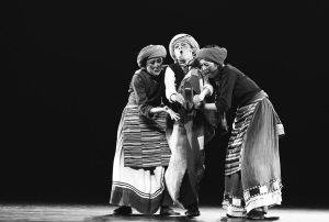 阿佳,在藏語中是大姐的意思,而老阿佳多指年齡在50歲至60歲的中年女性。在以往的藏族舞蹈作品中,老阿佳很少作為主體形象出現(xiàn)。原因在于,從舞蹈表現(xiàn)力來看,這一主題形象在編排上面臨的限制較多。若是在舞蹈語言設計上過于簡單、直白,就會導致觀賞性不高;若是動作過于豐富、花哨,又似乎偏離了人物的真實形象。但在《三個老阿佳》這部作品中,編導通過準確的形象捕捉與藝術塑造,使舞臺上的老阿佳既有生活的溫度,又具備藝術的高度。