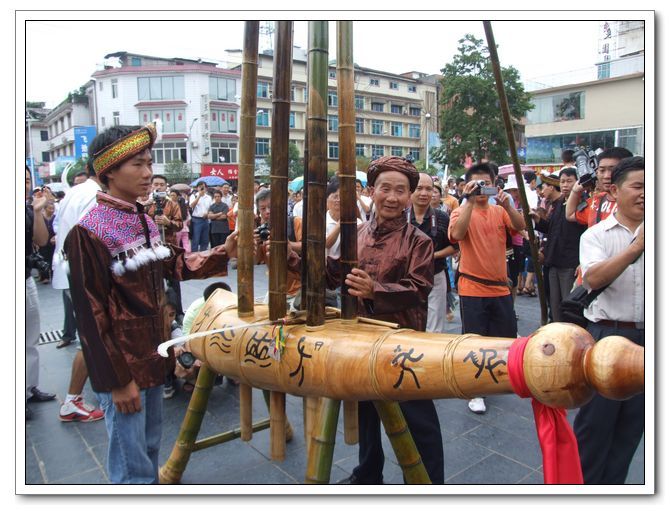 蘆笙是苗族最有代表性的民族樂器。據(jù)考古資料稱,蘆笙至少在兩千多年前已出現(xiàn),吹蘆笙是每個苗寨不可缺少的重要活動。融水每個苗寨都有一堂蘆笙。苗族同胞逢年過節(jié)以及紅白喜事、談情說愛都吹奏蘆笙,并伴以踩堂舞。可以說,蘆笙是打開苗胞心靈的金鑰匙,是苗家精神文化生活的主心骨。