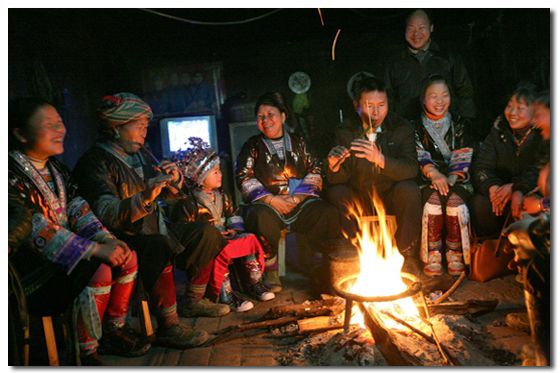 苗族起木樓很注重火塘的設(shè)置,特別留出二樓正中的大半廂作火塘?;鹛劣脤捄窭仙寄景彖傊瞥梢粋€長寬約一點五米,深約六十公分的正方形木槽,槽內(nèi)用粘性強的黃泥巴填滿舂緊,正中央安放有三腳鐵架,用于架鍋煮食?;鹛潦侵蟪?、進(jìn)餐、取暖、會客、議事、祭祀的地方,又是年輕人走妹行歌、談情說愛、舉行婚禮儀式的場所。因此苗家人對火塘是十分看重的。