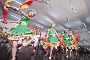 “同學(xué)們,耍起來的時(shí)候一定要把手臂擺起來?!痹诙魇┦邪沤抖弊遴l(xiāng)民族初級(jí)中學(xué),老師正在給學(xué)生們傳授表演非物質(zhì)文化遺產(chǎn)板凳龍的技巧。為傳承中華優(yōu)秀傳統(tǒng)文化,學(xué)校開設(shè)了特色課程?!靶埴椪钩帷薄把┨焐w頂”“黃龍纏腰”“猛虎下山”……老師教得耐心細(xì)致,學(xué)生舞得有模有樣。