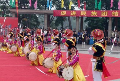 象帽舞是朝鮮族富有代表性的一種舞蹈形式,深受當(dāng)?shù)爻r族居民喜愛。每逢節(jié)日、慶典等特殊日子,人們就跳起歡快的舞蹈,搖動(dòng)色彩繽紛的象帽,線條流暢的長長飄帶旋轉(zhuǎn)如風(fēng),在舞者周圍畫出各種光輝耀眼的美妙彩環(huán),獨(dú)具特色的舞蹈體現(xiàn)了朝鮮族人民在勞動(dòng)、生活中的喜悅之情和活潑大方的民族氣質(zhì)。