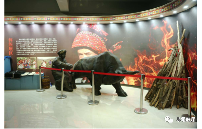 2.彝族展區(qū): 彝族是最早定居尋甸的民族,縣境內(nèi)的支系有黑彝、白彝、干彝,距今有3000多年的歷史。在漫長的歷史長河中,彝族人民創(chuàng)造了璀璨的地域文化——神秘的古彝文,原始的祭祀禮儀,別致的傳統(tǒng)民居“垛木房”,古老的彝族山歌、古歌、彝族舞蹈,獨(dú)特的婚俗“拖媳婦”,傳統(tǒng)節(jié)日“立秋節(jié)”、“火把節(jié)”以及被美譽(yù)為“活化石”的彝族服飾,每一項(xiàng)都蘊(yùn)含著極深的文化內(nèi)涵;火把節(jié),象征著彝族人民的激情與戰(zhàn)勝自然災(zāi)害的勇氣和力量;彝族戈濮支系的獨(dú)創(chuàng)“立秋節(jié)”,通過盛大的秋場斗牛、夜間情歌對唱等形式將豐收的歡樂和喜悅傳遞四面八方。
