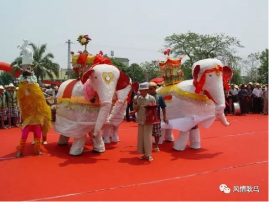 白象舞是云南耿馬縣傣族群眾盛行跳的一種民間舞蹈,也是耿馬特有的舞種,白象舞屬雙人擬獸舞,十分講究舞者之間的默契配合。舞蹈步伐穩(wěn)健、有力。舞蹈基本動(dòng)作有:“原蹈步”、“前后跳”、“左右跳”、“鼻走”等。經(jīng)過民間藝人長(zhǎng)期不斷改進(jìn),而今,耿馬白象舞已經(jīng)形成了一整套基本舞步,表演者借助白象道具模仿大象動(dòng)作,把笨拙的大象表現(xiàn)得活潑可愛、步伐穩(wěn)健、韻律十足。
