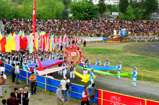 三月街又名“觀音市”,是云南白族盛大的節(jié)日和街期。每年夏歷三月十五至二十日在大理城西的點(diǎn)蒼山腳下舉行。最初它帶有宗教活動(dòng)色彩,后來(lái)逐漸變?yōu)橐粋€(gè)盛大的物資交流會(huì)。明清時(shí)期,四川、西藏、江南各省都有商人到此貿(mào)易。它不僅是個(gè)交換場(chǎng)所,還是表演各種舞蹈和賽馬、競(jìng)技的樂(lè)園。中華人民共和國(guó)成立后,三月街已發(fā)展成滇西各族人民一年一度繁榮的物資交流和民族體育文藝大會(huì),對(duì)加強(qiáng)民族團(tuán)結(jié)、促進(jìn)民族間的經(jīng)濟(jì)文化交流,起了積極的作用。