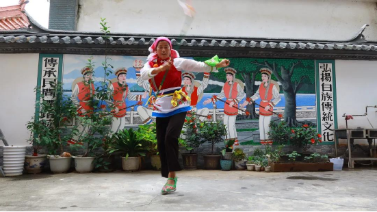傳統(tǒng)文化時時學,白族舞蹈代代傳。小小的霸王鞭看似簡單,里面卻包含了白族人民田間勞作的智慧。用自己的努力,言傳身教地教授霸王鞭,這愚公移山般的精神也是傳承人的智慧?!敖裉煜挛?點,我還要去江尾一趟,教他們的繞三靈團隊跳霸王鞭”,何松康說。
