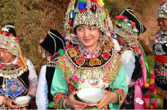 “羅羅潑支”男女服飾的特點:“羅羅潑”男子服飾與“迷撒潑”相差無幾,一般不戴白頭巾。但是婦女的服飾相差卻很大,明顯保留著古樸高雅的南詔遺風(fēng)。頭飾由桂花、包頭、飄帶、大墜子、蜜蜂墜、芝麻鈴組成。桂花墊子在裱布上蒙黑色面料,中間訂有銀飾。包頭以黑色為主,長約2米,后鏈系于包頭,鏈子為銀制。飄帶長約4尺,黑色留花邊,兩頭訂英蘇。包頭還系有大墜子、蜜蜂墜各一對,芝麻鈴20個。領(lǐng)合由裱布黑色面料上訂芝麻玲20個圍在脖子上。圍腰的前胸部,由領(lǐng)口至腹部,左右各垂掛一條綴有串珠、針筒、響篾(口弦)一類飾品和生活用品的銀質(zhì)項鏈。人一走動,全身的小蘇鈴就響,聲音悅耳動聽,形象美觀大方。額頭前還圍有一塊翠綠色的“桂花綁”,綁上釘有銀質(zhì)小泡泡200多顆,羅羅潑支婦女的服飾彰顯華麗之美。