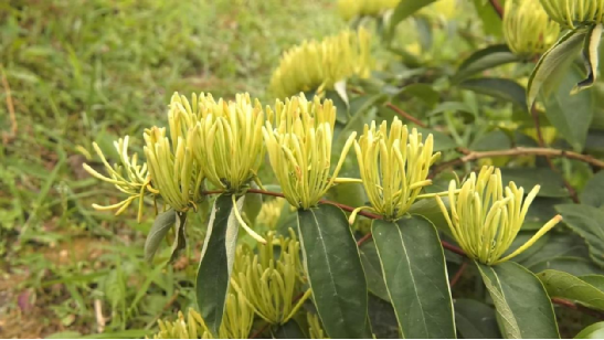 金銀花既能疏散風(fēng)熱,還善清解血毒,可用于各種熱性病?!跋胬傥逄枴庇纸小盎ㄍ酢?,具有花蕾齊、花質(zhì)優(yōu)、產(chǎn)量高、見效早,耐旱澇、耐寒熱、耐土壤瘠薄,抗病性好、適應(yīng)性強(qiáng)等優(yōu)點(diǎn)。截至目前,大壩村委會轄區(qū)內(nèi)總種植面積250余畝,每畝鮮花產(chǎn)量在300斤左右,按照市場價每斤6元,總共收益45萬余元。