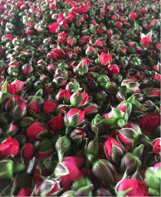 在阿舍鄉(xiāng)清香玫瑰合作社的玫瑰花茶基地里,玫瑰花姹紫嫣紅,爭(zhēng)奇斗艷,美不勝收。為了搶抓玫瑰花采摘最佳時(shí)間,花農(nóng)早晨5點(diǎn)多就已經(jīng)忙活起來(lái),他們穿行于花海之間,背著籮筐興高采烈地采摘今年的第一波玫瑰花。