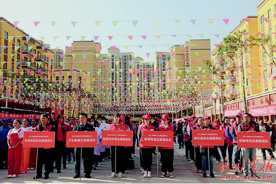 志愿服務(wù)隊(duì)在和諧社區(qū)開展服務(wù)。