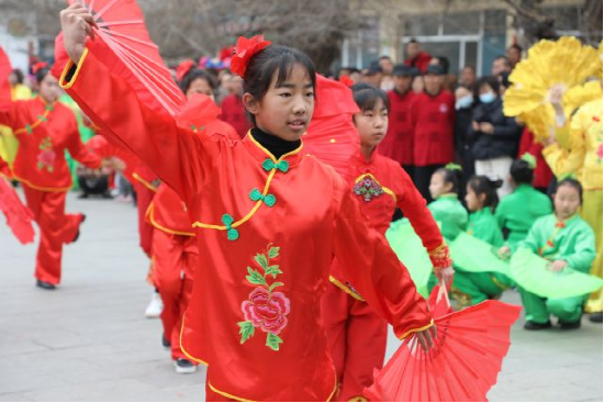 在[資2]讓人流連忘返的民俗演出中,最引人矚目的便是來自討思浩小學(xué)的學(xué)生們帶來的自“天倉節(jié)”祈福儀式演變而成的“天倉舞”表演,孩子們有板有眼的舞蹈動作完全不遜色于專業(yè)的演出隊伍,不僅將討思浩特有的傳統(tǒng)民俗淋漓盡致的展現(xiàn)出來,更是對西北農(nóng)耕文化的有力傳承。據(jù)介紹,2018年12月開始,村委會聯(lián)合討思浩小學(xué)于每周五下午開設(shè)了民俗文化特色課,天倉舞傳習(xí)、民俗歷史講座等內(nèi)容的設(shè)置,讓孩子們對家鄉(xiāng)的歷史文化更加了解,增添了對家鄉(xiāng)的認(rèn)同感,也讓保留了幾百年的民俗文化得到了傳承。
