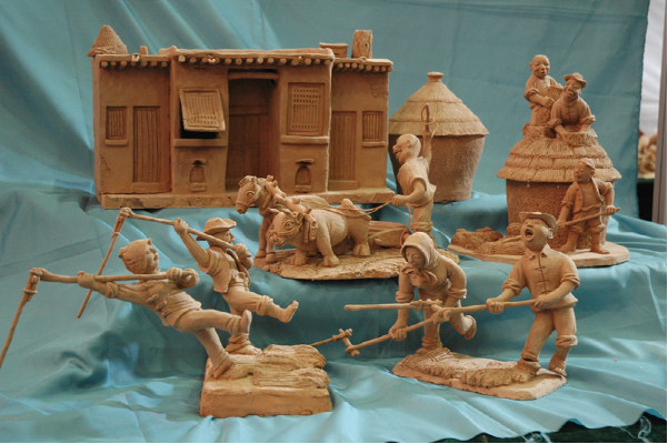 泥塑藝術(shù)是我國(guó)一種古老常見(jiàn)的民間藝術(shù)。它以泥土為原料,以手工捏制成形,或素或彩,以人物、動(dòng)物為主。不同的民間風(fēng)俗,流傳著很多動(dòng)人的傳說(shuō)故事,這些構(gòu)成了泥塑藝術(shù)的精神內(nèi)核。民間泥塑的用途主要有祈子延壽、納福招財(cái)、驅(qū)邪避災(zāi)和裝飾擺設(shè)等。泥塑成本低,費(fèi)工少,是老百姓喜聞樂(lè)見(jiàn)的藝術(shù)表現(xiàn)形式,它往往和節(jié)令、禮儀、風(fēng)俗聯(lián)系在一起,反映的是當(dāng)?shù)剞r(nóng)村人們?nèi)粘I畹牟煌瑘?chǎng)景,人物栩栩如生,場(chǎng)景鮮活生動(dòng)。