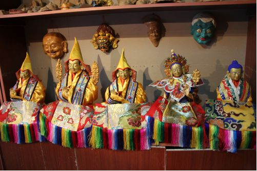 在普布次仁所在的公司里,有一個(gè)專門用來制作泥塑面具的房子,從外表上看去,它只是一個(gè)普普通通的藏式民居,但走進(jìn)其中,則別有一番天地。在房間里整齊擺放了大大小小的泥塑面具、佛像,這些手工藝品造型生動(dòng),每一件手工藝品仿佛都在訴說著一個(gè)古老、動(dòng)人的故事。
