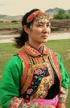 蒙古族科爾沁部的服飾,是內(nèi)蒙古自治區(qū)東部地區(qū)比較有代表性的蒙古族服飾,以用料講究、款式多變,色彩和諧,工藝復(fù)雜見長??茽柷卟菰系拇汤C,早年的時候,是比較簡單的,后來工藝流程才變得復(fù)雜起來,包括設(shè)計繡稿、勾稿、染線,上棚,配線,刺繡,下棚等若干步驟,其做工細(xì)膩,講究針法和紋路,每一件繡品都精益求精,一絲不茍,出來的繡品堪稱精品佳作。蒙古族刺繡的針法包括9大類40多種,有齊針、散針、稀針、接針、打籽、退暈等刺繡針法。