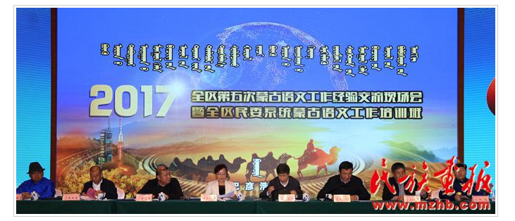 2017年11月28至29日,內(nèi)蒙古自治區(qū)第五次蒙古語文工作經(jīng)驗(yàn)交流現(xiàn)場會暨全區(qū)民委系統(tǒng)蒙古語文工作培訓(xùn)班在內(nèi)蒙古自治區(qū)阿拉善盟召開