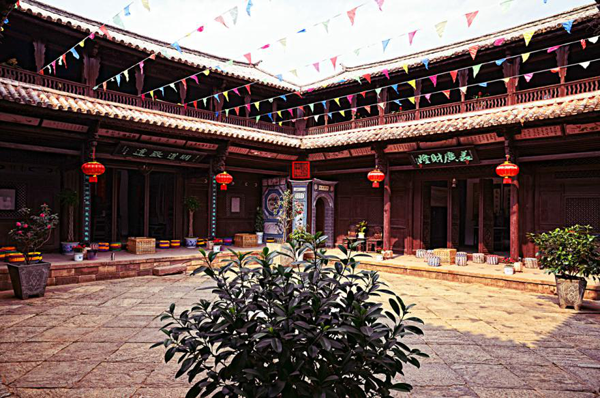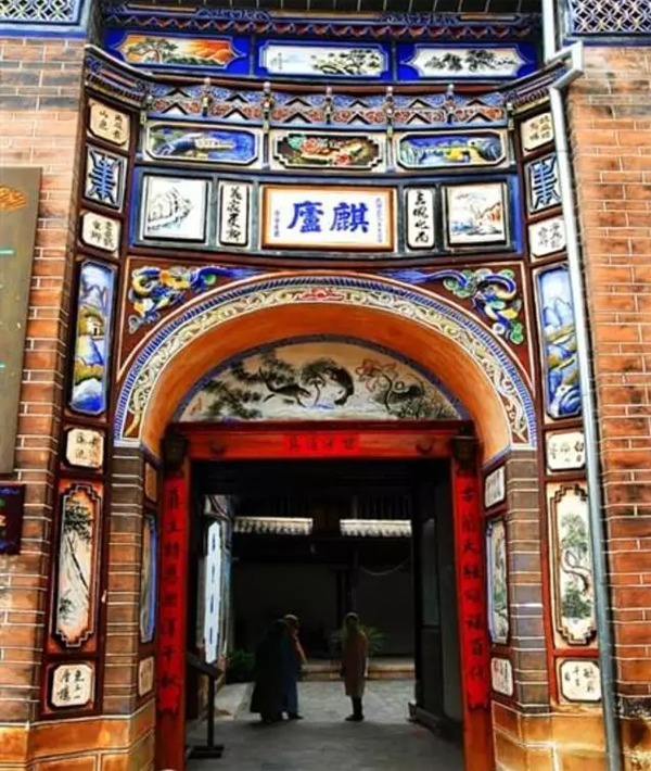 雖然經(jīng)過(guò)歲月侵蝕,但院落的每一個(gè)角落,無(wú)論是精心裝飾的門(mén)楣還是匠心獨(dú)具的花窗,盡管經(jīng)過(guò)了多少年的風(fēng)雨,依然令人感到當(dāng)年的氣魄和獨(dú)有的魅力。在馬如驥大院的二樓,那藻井的彩繪今天依然清晰美麗,有彩繪《三文筆》、《阿文學(xué)?!?、《雞足山莊嚴(yán)塔》、《上海街景》。特別是彩繪《上海街景》,被專(zhuān)家視為不可多得的珍貴資料,它不僅惟妙惟肖的再現(xiàn)了當(dāng)年十里洋場(chǎng)上海灘的風(fēng)華,還體現(xiàn)了馬幫商人的開(kāi)放胸襟和開(kāi)闊眼界,體現(xiàn)了對(duì)現(xiàn)代化生活的向往和對(duì)未來(lái)的憧憬。