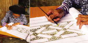 村里仍有年過(guò)古稀的老人忙著繪制蠟染紋樣。