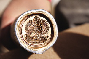 我在曼谷一家有40年歷史的佛像店“佛光工藝社”采訪時(shí)問(wèn)到老專家這樣一個(gè)問(wèn)題:泰國(guó)現(xiàn)在大概有多少種圖案的帕肯?所有聽(tīng)到這個(gè)問(wèn)題的人都是一聲驚嘆,然后笑說(shuō):“無(wú)數(shù)!”我非要問(wèn)出個(gè)數(shù)來(lái),他們便告訴我,泰國(guó)是一個(gè)歷史劃分復(fù)雜、族源廣博的國(guó)家,因此其包容性很強(qiáng),雖然九成以上的人信仰佛教,但是婆羅門(mén)教、道教、伊斯蘭教、基督教等在泰國(guó)都被接納,還有本土的一些法術(shù)也不曾被丟棄。所以,每天每個(gè)來(lái)定做的人都會(huì)有不同材質(zhì)的要求,不同圖像、符咒的組合,僅一個(gè)工藝社40年來(lái)就已經(jīng)做過(guò)幾十萬(wàn)種的圖案組合。我收藏的擦擦有不同年代、不同材質(zhì)、不同價(jià)值的,除去年代久遠(yuǎn)的,頗有價(jià)值的就是一個(gè)藥擦,那是一個(gè)大威德金剛擦,專家說(shuō)從被剝落的剖面看,里面有藥材的成分。我知道,在西藏,擦擦因材質(zhì)和制作人不同而有很大的區(qū)別。擦擦中最為稀有難求的一種叫“布擦”,那是寺廟僧人在保存活佛法體的時(shí)候,將那些浸透活佛法身血水的鹽巴或其它藥物和泥土融合后制成的。另一種較為珍貴的擦擦是活佛的骨灰與泥土摻混在一起制作而成的。還有一種藥物擦擦,是用不同的名貴藥材如珍珠、瑪瑙、藏紅花等藏藥合成制作,可服用治病。最普通的擦擦用一般的泥土制作,好一點(diǎn)的有膠泥、陶土、白泥等,這種擦擦成本低廉,在民間流傳最廣。