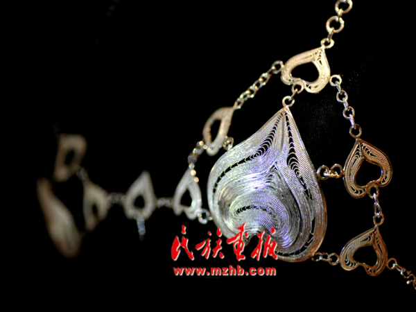 走進龍?zhí)柕拿缱邈y飾傳承工作室,一件件銀飾讓人目不暇接,嘆為觀止。看似普普通通的銀片、銀條,在他的手里富有生命力的藝術(shù)作品,每個制作細節(jié)和過程都透著一股精致。