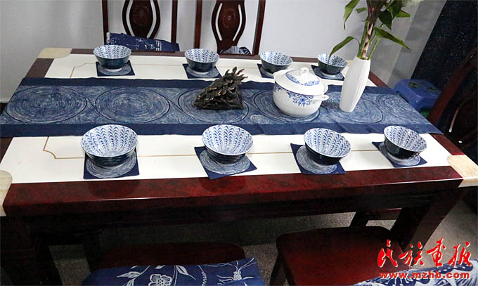 楊文斌老師和她的夫人梁定芳老師都是“非遺”傳承人?,F(xiàn)在他們忙著著書、講學(xué)、開研討會。談起蠟染、談起民族民間工藝,楊文斌老師滔滔不絕:“現(xiàn)在要從三個方面認(rèn)識和研究民族民間工藝:一是從歷史學(xué)、人類學(xué)、民族學(xué)的角度解讀,二是從審美學(xué)、藝術(shù)視覺理念的角度解讀,三是從工藝學(xué)、材料學(xué)、技藝學(xué)的角度解讀。現(xiàn)在植物染料的加工和染色技藝消失得很快。老祖宗留下的寶貝到我們這代可不能扭曲和斷裂?!?/p>