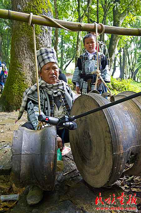 銅鼓是彝族倮家人心靈的號角,有銅鼓的地方就有倮家人。伴隨著古老的銅鼓聲,倮人開始慶?!笆w菜節(jié)”