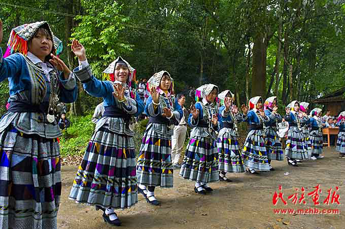 在“寨老”敲響的銅鼓聲里,男人們揮舞著有力的手臂,舞動著彪悍的動作;姑娘們踏著歡快的鼓點(diǎn),擺手扭腰跳起優(yōu)美的舞蹈;孩子們像林中的小鳥,嘰嘰喳喳地在人群中歡呼雀妖;寨里的老人們坐在場地中央,盡情地享受著包谷美酒和美食。